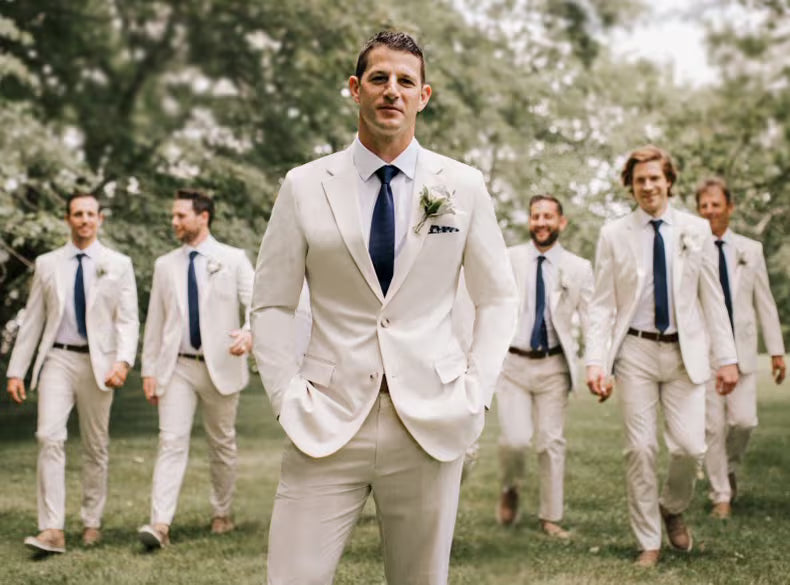 Beach formal wedding attire for men is going to be similar to other semi-formal wedding attire with resort casual