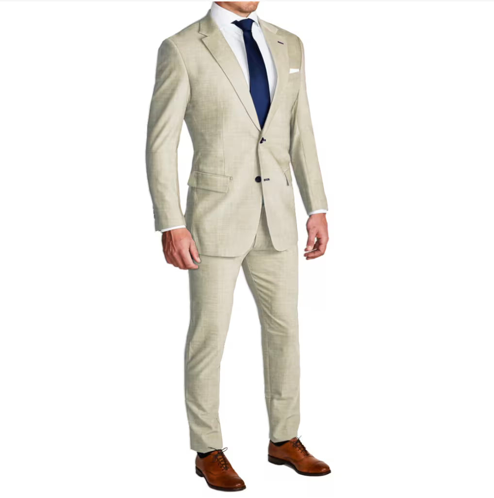 Now that you’ve determined where the event is going to be, it’s time to pick out the outfit for your beach formal event. For men, always stick with long-sleeve button-up shirts for beach formal weddings and events and never go for a short-sleeve button-up. You can roll up the sleeves if it’s hot, which is also why sticking with classic barrel cuffs is the best option (french cuffs would be too formal). You will still want to wear a suit but opt for lighter fabrics like seersucker, light blue, light green, khaki, or heathered-light colored suits. Have some fun by wearing a light-colored blazer paired with khaki dress pants. Avoid monochromatic suits in navy, black, or dark grey. If you know it’s going to be very hot and humid at the wedding, wearing a button-up dress shirt with a vest and dress pants is appropriate for men.