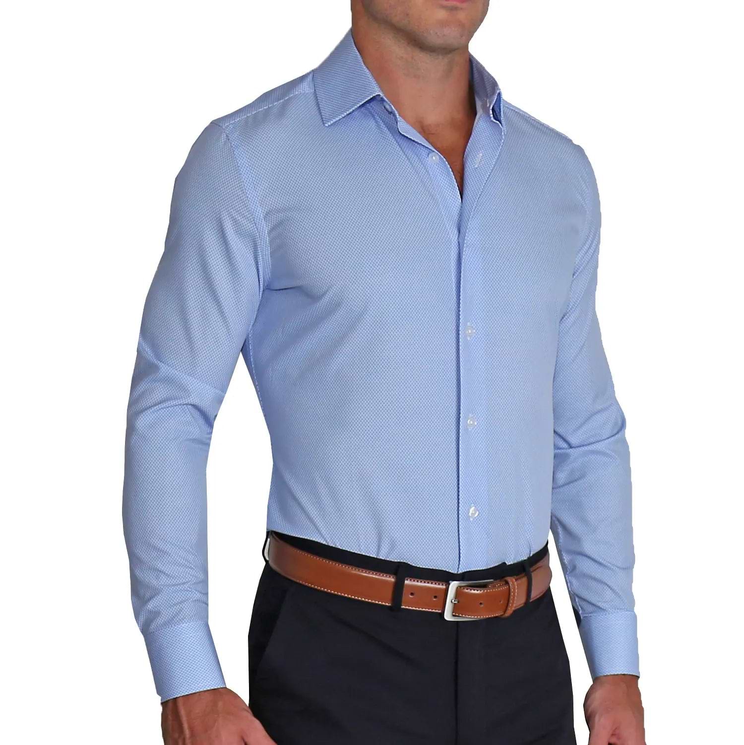 A regular fit dress shirt is often too baggy and not built for the athletic V-Shaped body. A shirt that's designed for a more athletic build is usually more cut in the chest and shoulders, providing a much more comfortable fit. The fabric of our athletic fit dress shirts are also more breathable and lightweight than your average dress shirt. Our comfortable dress shirts for muscular guys are moisture-wicking, and machine washable. Making them easy to travel with and easy to maintain! Overall, an athletic fit dress shirt provides greater comfort and mobility for guys with a more muscular build.