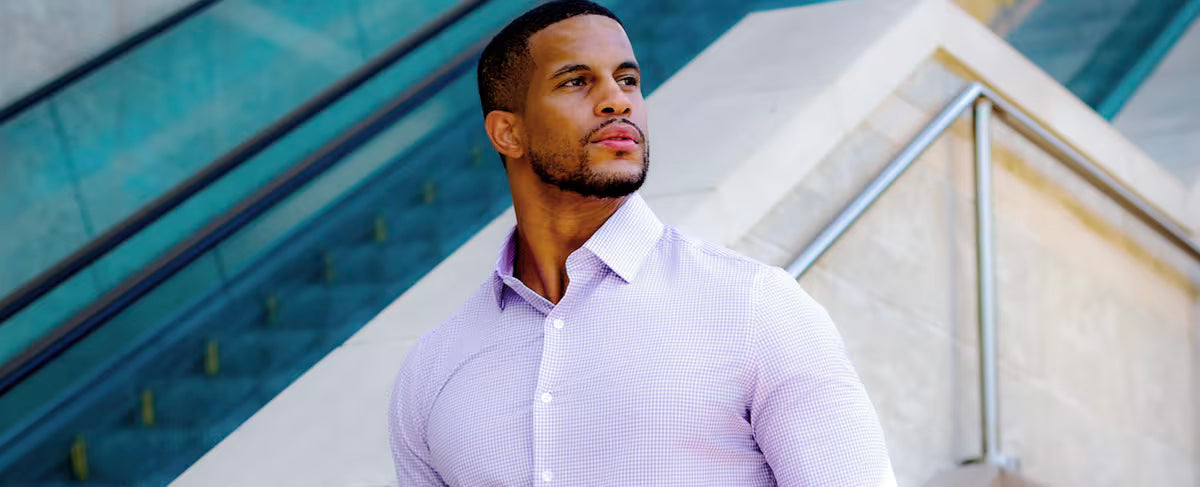 If you've only worn muscle fit clothing, give our athletic fit a try in multiple sizes to see how much of a fitted look you prefer. If you’re planning on going to an event or work related outing and need to look professional, we suggest going with an athletic fit over a muscle fit. The tautness and pulling that goes along with anything muscle fit can sometimes be perceived as too casual depending on your crowd. A great alternative for these scenarios is to pick up some athletic fit clothing to fill in your wardrobe. Athletic fit clothes will still give your body the proper fit it deserves, but it will look a bit more professional because the clothes are laying perfectly against your body without any pulling.