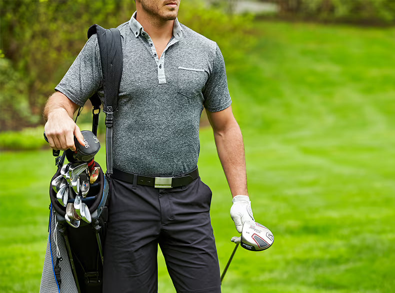 When it comes to men’s golf attire, a pretty standard image comes to mind: tailored slacks or khakis and a polo shirt with a collar. However, long before performance golf shirts became a thing, back in the day, as in the early 1900’s, the typical golf uniform consisted of a stiff button-down shirt, a formal suit, and a tie. The material was made from thick, heavy fabrics like wool, hardly the type of apparel that allowed you to move freely on the links. Golfers looked like they were headed to a boring day at the office instead of a fun afternoon on the golf course. It wasn’t until the 1940’s that men started to ditch the suits and slipped into the short-sleeved cotton polo we’re so familiar with.