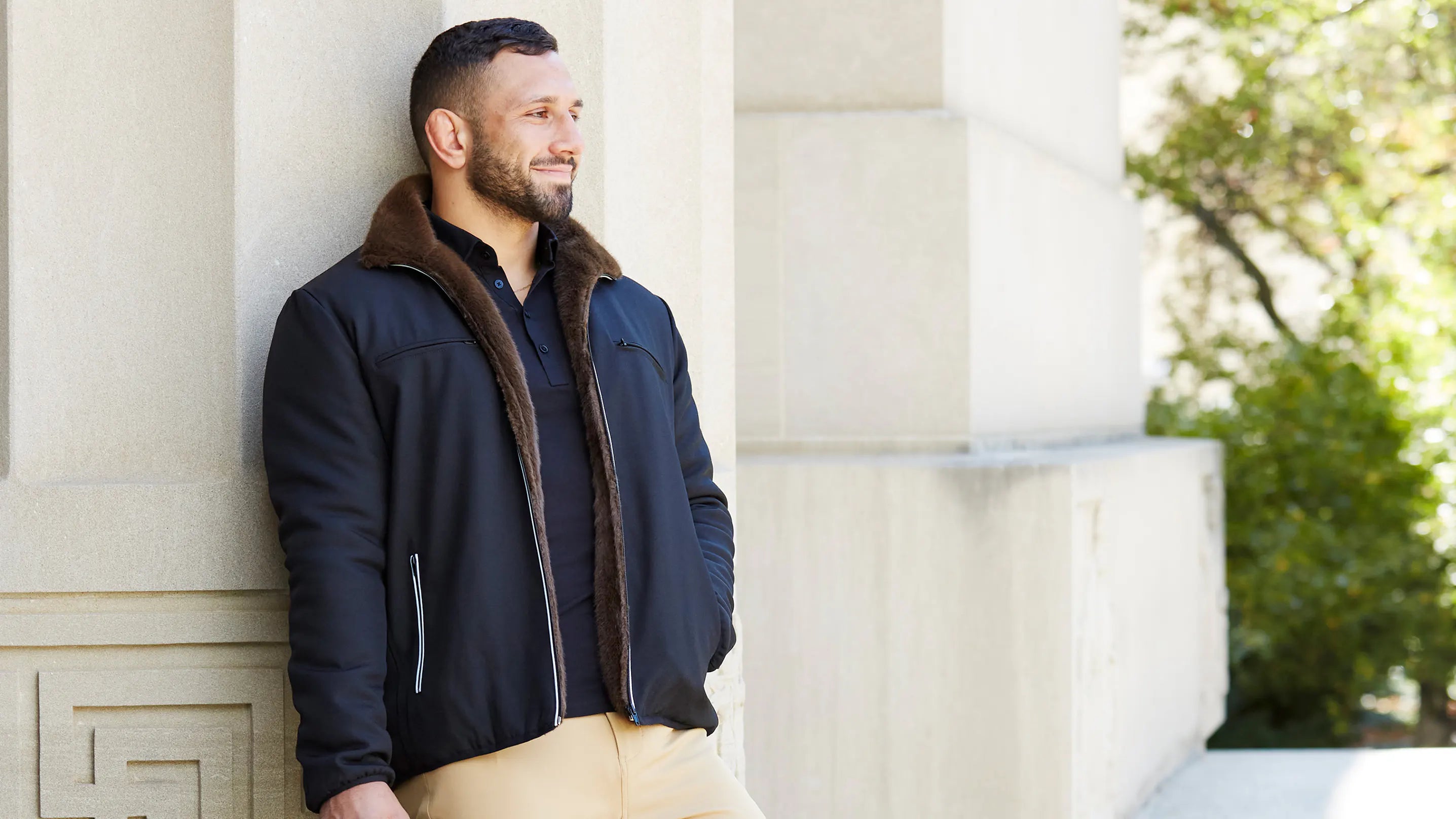 Ask any guy dedicated to his fitness regime about the perfect performance stretch jacket for his workouts during the cooler months, and you’ll likely get an earful about how there’s no such thing. Typically, the so-called athletic fit jacket is too bulky, too thin, too hot, not warm enough and just flat-out doesn’t move with your body. If you have an athletic physique, what you really need when working out is a stretch jacket, something that conforms to your shape and moves when you move. Not a bunch of ugly, cumbersome, blazing hot jackets that inhibit your workout – and you.