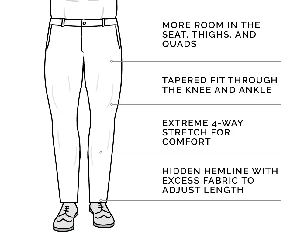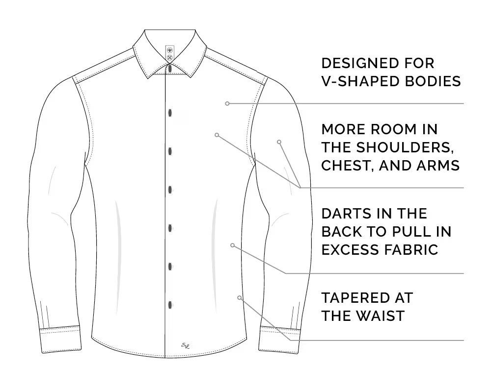 All of our gear is cut with our signature modern tapered athletic fit. With that said, we also offer other fit options, such as our classic fit sizing and our made-to-measure sizing.