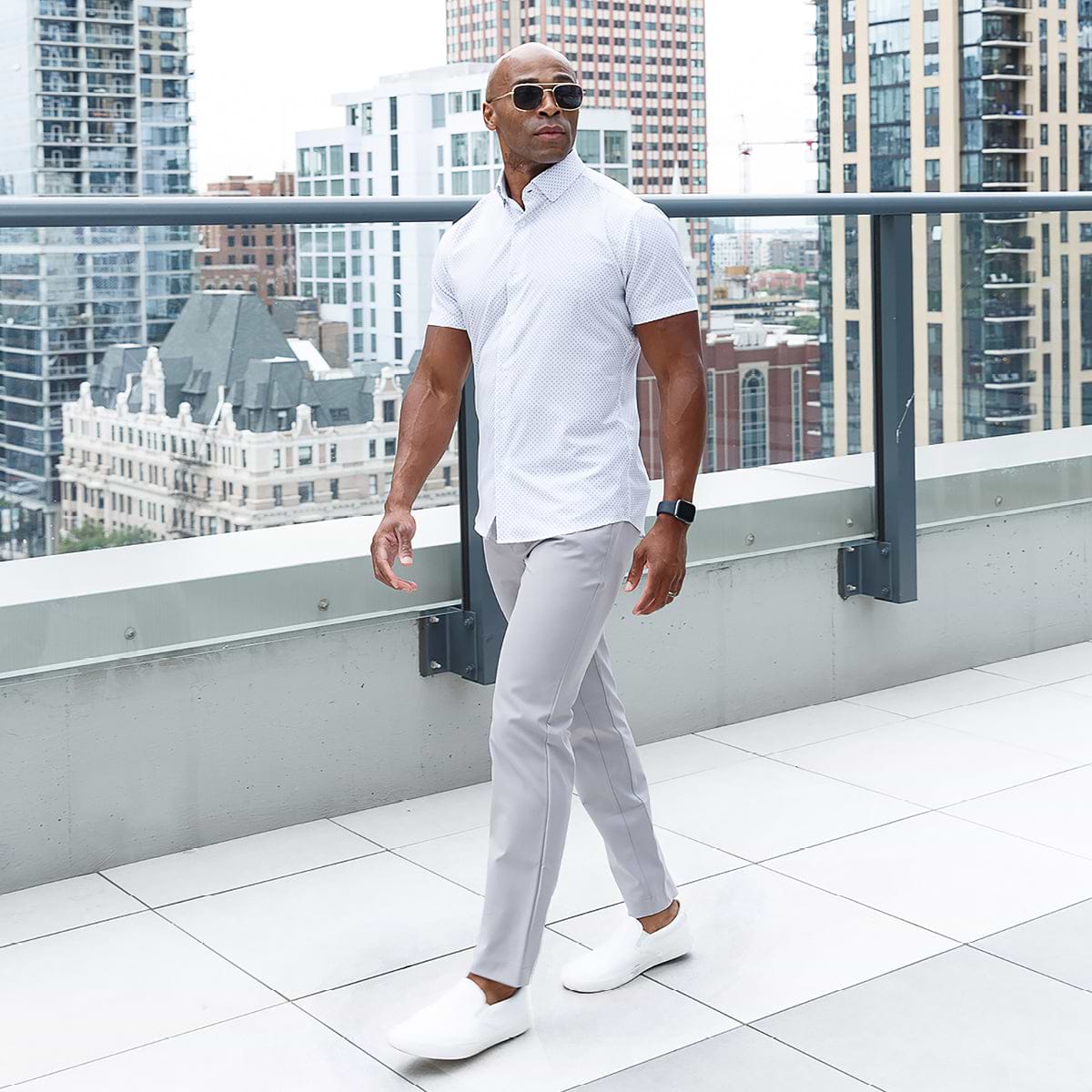 - Stretchy, moisture-wicking, lightweight, and wrinkle-free